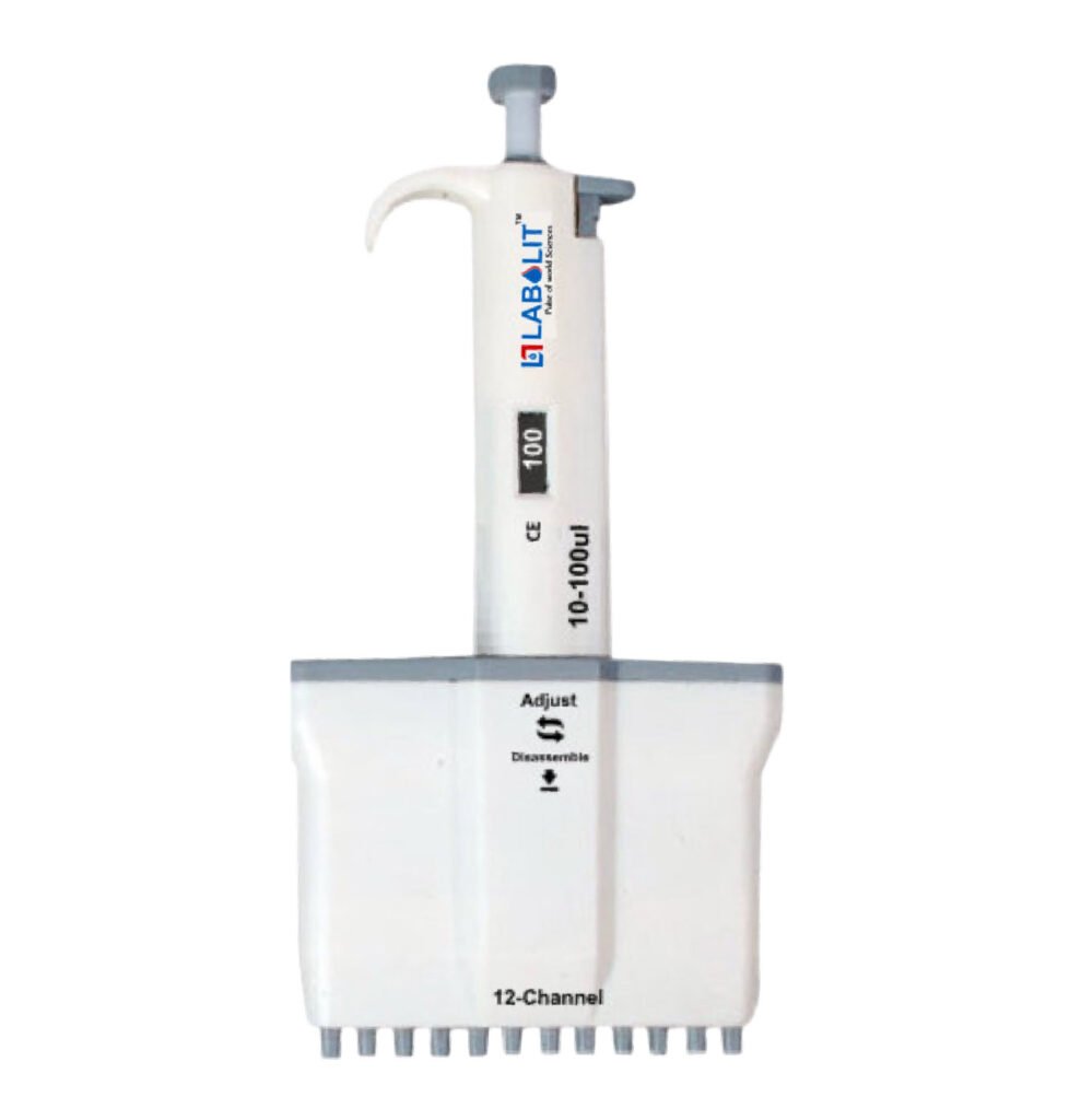 The Labolit UM-Multi Model 12 Channel Micropipette is designed for high-throughput and sensitive laboratory applications requiring accurate and simultaneous liquid dispensing across twelve channels. It ensures uniform volume delivery with excellent accuracy and repeatability, making it ideal for microplate-based workflows such as PCR, ELISA, and cell culture assays.